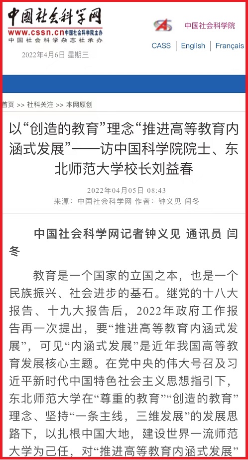 4月5日,中国社会科学网以“以‘创造的教育’理念推进高等教育内涵式发展”为题,对中国科学院院士、我校校长刘益春教授进行了专访。专访中,刘益春从如何理解高等教育内涵式发展、如何推进高校内涵式发展等方面,对学校践行“创造的教育”理念、坚持“一条主线,三维发展”的发展思路,持续深化教师教育改革,大力推进“双一流”建设,不断推动学校实现内涵式发展的实践探索进行了深入阐述。附:相关报道链接