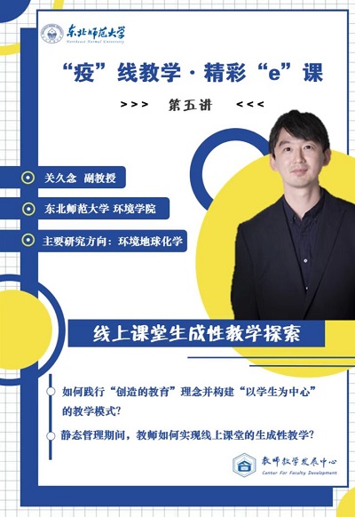 为帮助教师更好地开展线上教学活动,创新教学模式,服务教师教学发展,提升线上教学质量,发挥区域辐射与引领作用,教师教育研究院教师教学发展中心推出“‘疫’线教学·精彩‘e’课”系列活动。本期带来第五讲——多重资源整合的线上教学设计。本次活动主讲人为环境学院教师关久念。 线上课堂生成性教学探索疫情期间,如何组织实施线上教学,将立德树人的根本任务落到实处,是教师面对的重要课题。在建设好线上教学平台的基础上...
