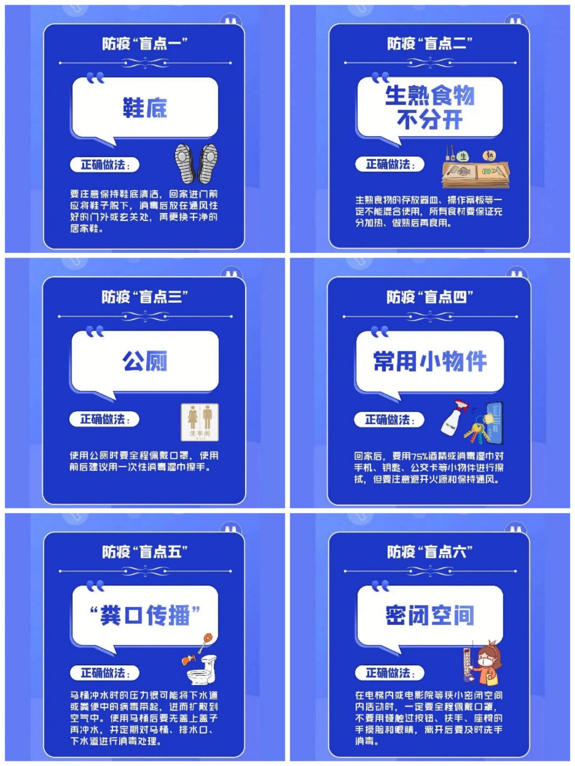 狡猾的病毒往往藏在容易被忽略的角落,一旦忽视,就有可能“中招”,同学们要养成良好的生活习惯,做好日常的消杀工作,时刻保持警惕,严谨细致,以下这些“盲点”千万不要忽视。战“疫”路上,永不止步。
