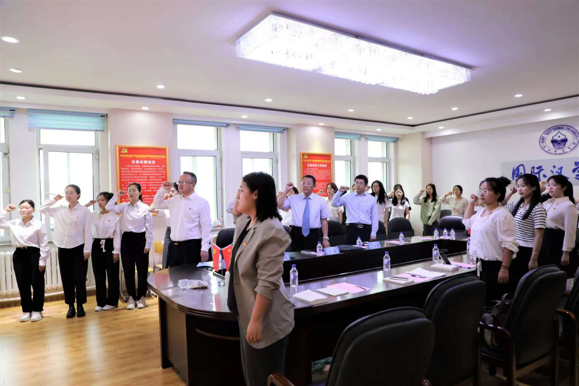 为加强对新入党同志的党性党纪教育,全面贯彻党的二十大精神,6月27日,国际汉学院举行新党员入党宣誓仪式暨学习贯彻习近平新时代中国特色社会主义思想主题教育交流会。学校党委副书记王延,学院相关负责人、2021级研究生党支部全体党员、2022级党员代表和研究生会主要学生干部等40余人参加了活动。 在入党宣誓仪式上,全体起立奏唱《国际歌》后,五名新入党的同志在党旗前列队,面对党旗紧握右拳,庄严宣誓,所有老党员一起再次重温入党誓词。...