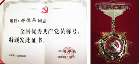 12月18日,郑德荣同志在庆祝改革开放40周年大会上被授予改革先锋称号
