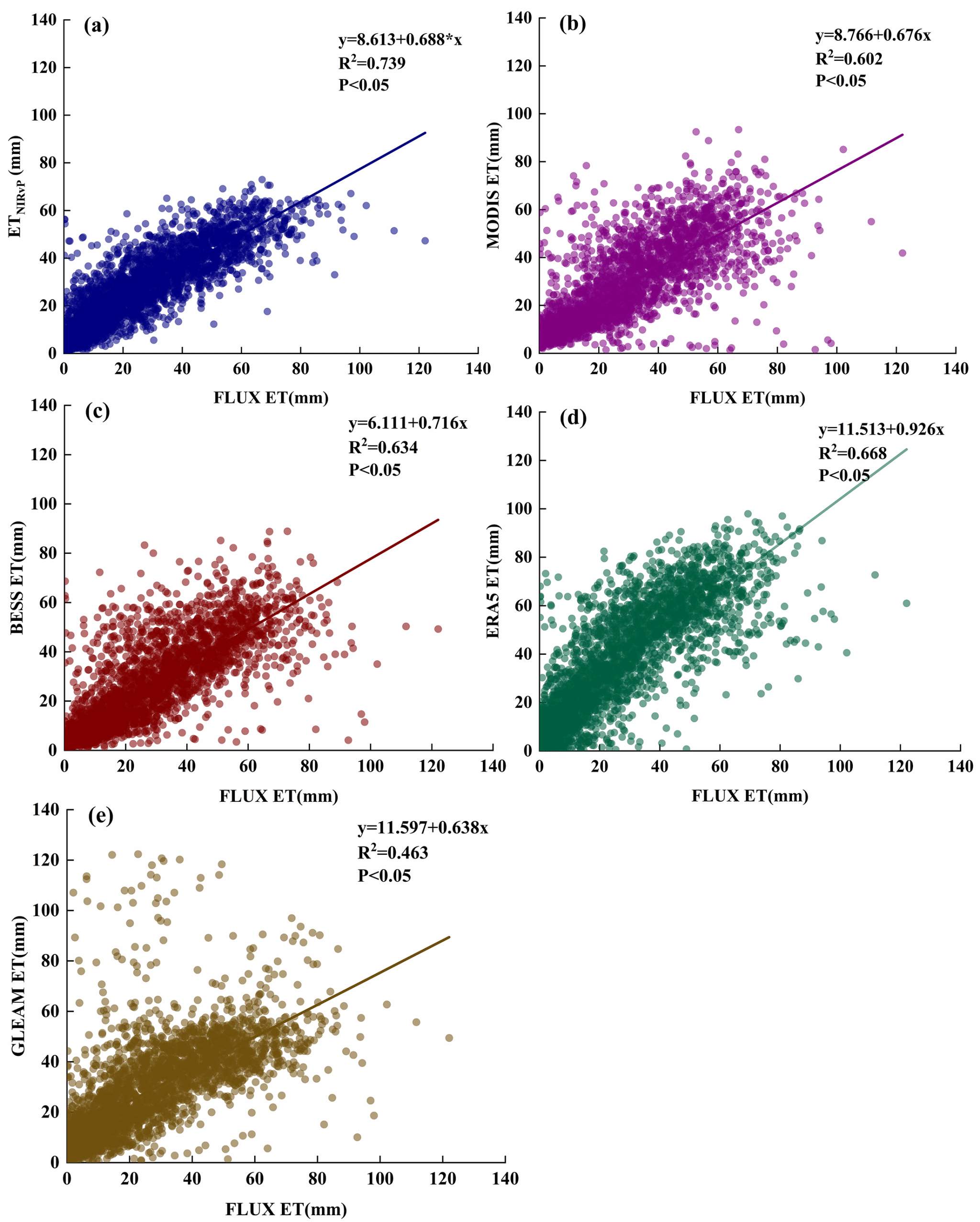 图9 根据NIRvP估算ET与其他四种ET产品的精度比较