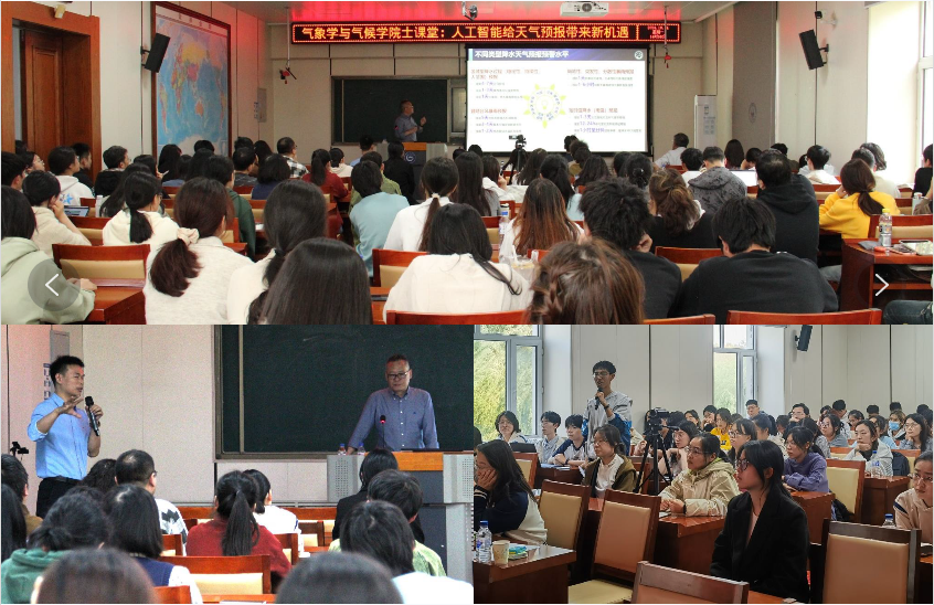 这次报告既是一次学科前沿的学术报告,也是我院国家一流本科课程《气象学与气候学》院士走进课堂的第一讲。在报告过程中,师生们积极提问,围绕报告内容展开热烈的讨论,与沈学顺院士共同探讨我国天气预报的发展动态和人工智能在预报中的重要价值。沈学顺院士还从切身经历鼓励学子们打好学科基础,更要开阔视野,利用好新的人工智能技术去探索未知的领域。