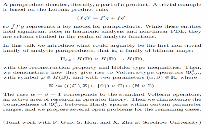 报告题目:Analytic Paraproducts and New Volterra-type Operators