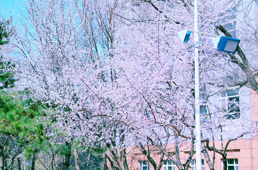 生命广场上树木吐芽,图书馆楼下桃花开绽,静湖湖心的苍松爆青……