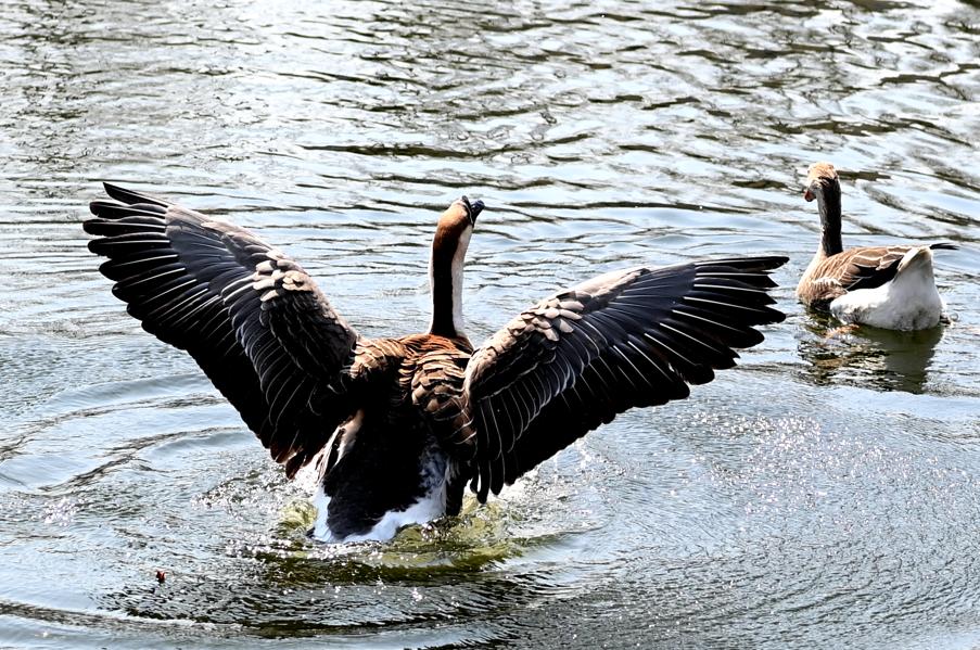 一池静湖满池春。湖上的“居民”也再度回归,他们正享受着水中暖意,欢呼雀跃,追逐打闹。