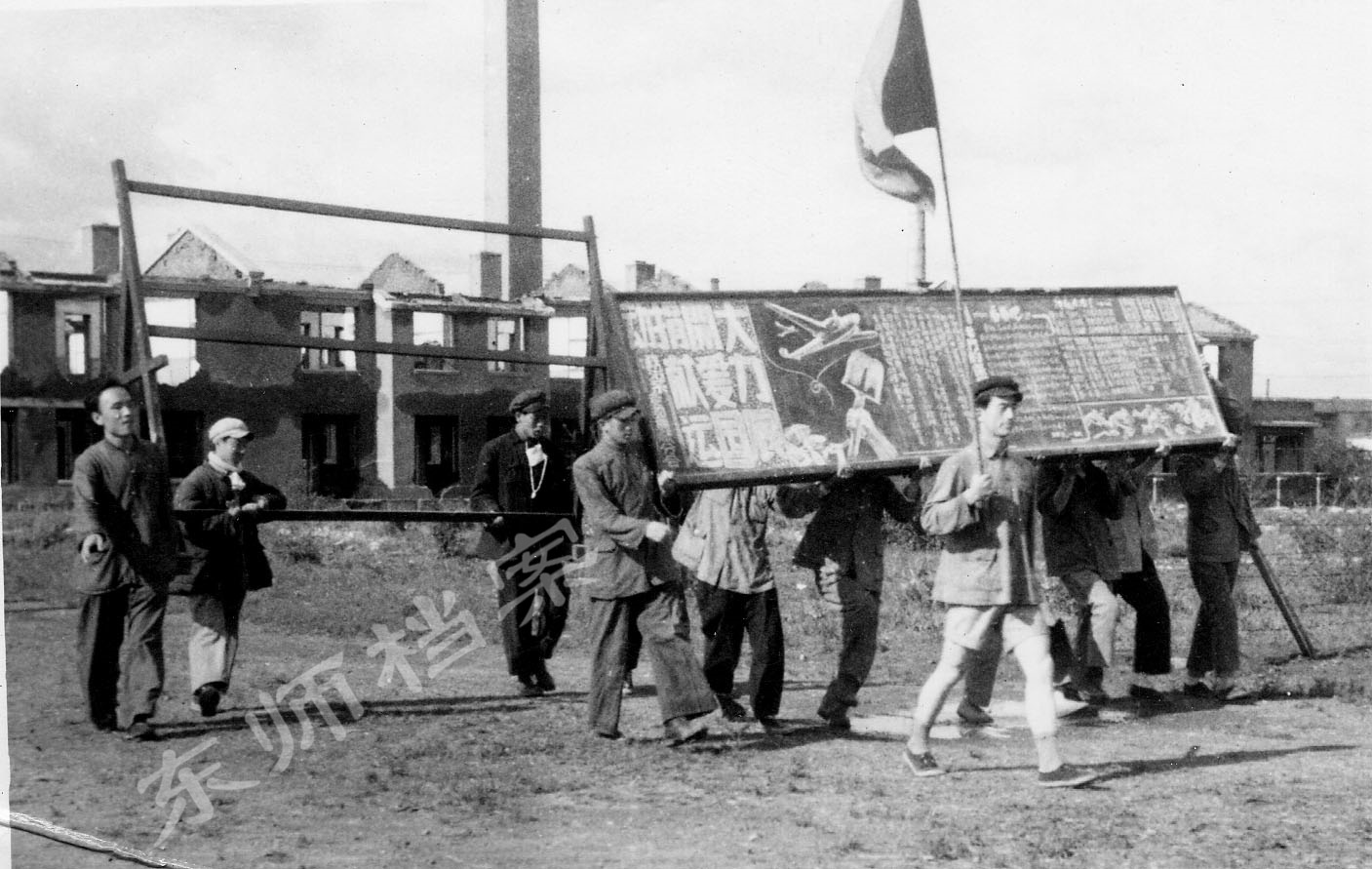 1950年冬,全校师生齐上阵,热火朝天的烧火炒面场面