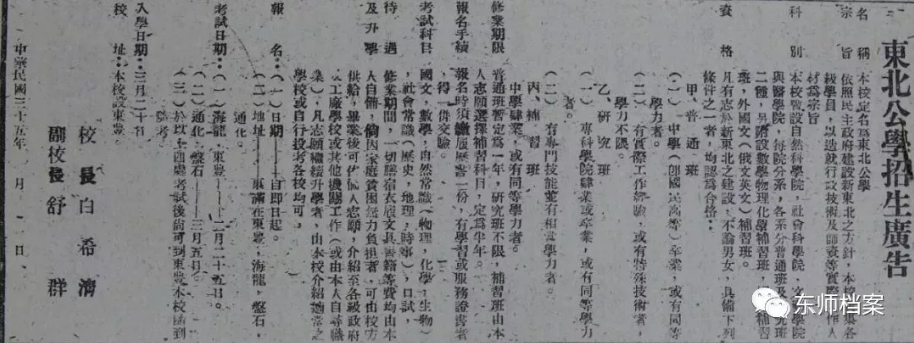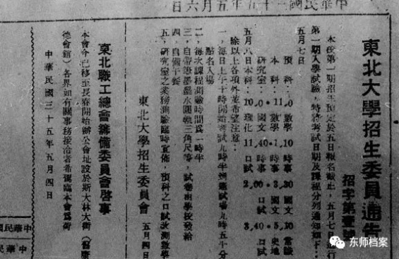 1946年5月28日至6月4日,学校在《东北日报》再次刊登《东北大学招生简章》。