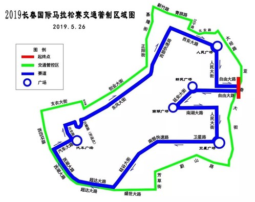 2019长春国际马拉松比赛,将于5月26日(星期日)在我市举行,届时长春市部分路段实行交通管制,在管制期间,禁止车辆在管制区域内通行。我校本部校区位于交通管制区域内,按照长春市政府和公安交警部门的要求,5月26日早6:00至比赛结束,需对本部校区西门、北门、东北门、南门关闭,禁止机动车辆进出。
