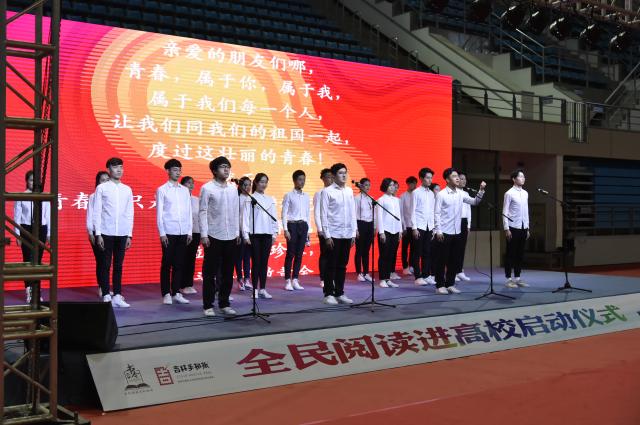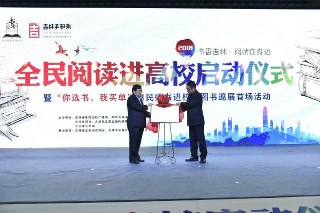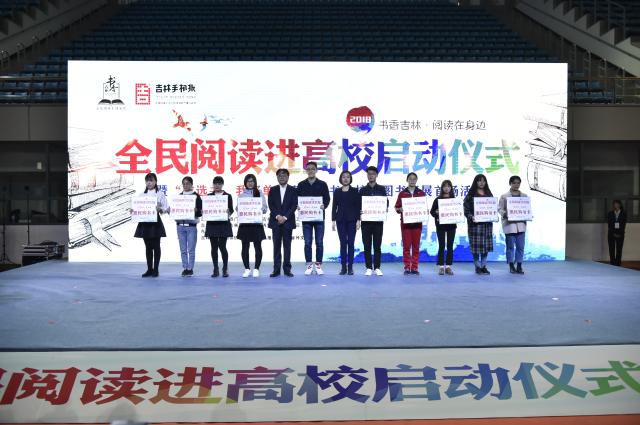 此次主题为“书香吉林·阅读在身边”的全民阅读进高校系列活动启动仪式由吉林省新闻出版广电局、中共吉林省高等学校工作委员会、吉林日报社、吉林东北亚出版传媒集团有限公司和我校主办,吉林省全民阅读协会、吉林手机报社、吉林省外文书店承办。吉林省高校工委专职副书记李彧威,吉林日报社总编、我校中文系校友陈耀辉,吉林东北亚出版传媒集团有限公司董事长成与华、总经理张四季,我校党委副书记王延,吉林省新闻出版广电局公共服务处处长张燕,吉林省各高校党委副书记、副校长、宣传部长、图书馆长等也出席了启动仪式。来自吉林省各高校的师生代表500余人参加了本次活动。