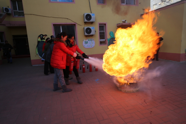 演练中,参与演练的教师迅速组织本班幼儿按照要求有序地向外疏散逃离,同时,幼儿园消防应急行动小组工作人员到达指定位置,按照演练方案帮助教师与幼儿迅速撤离到操场。消防应急行动小组人员在幼儿安全撤离后,进行实地灭火演练。各班教师在清点本班幼儿人数后向幼儿园领导进行汇报。演练活动结束后,保卫处相关负责人向教师和小朋友们讲解了逃离火灾的正确方法,并且示范了灭火器的使用,同时组织教师进行了实地灭火演练,帮助教职工掌握灭火器的正确使用方法和常用的灭火方法。