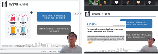教师根据学校疫情防控期间线上教学的相关要求,对本课程进行了多方面改革,充分利用丰富的线上教学资源,设计多样的授课内容,增加课后师生研讨环节,激发了学生的学习动力,保证了课堂授课质量。教师鼓励学生从专业角度思考分析疫情,鼓励学生独立思考,倡导学生树立积极向上的生活理念及健康的生活方式。