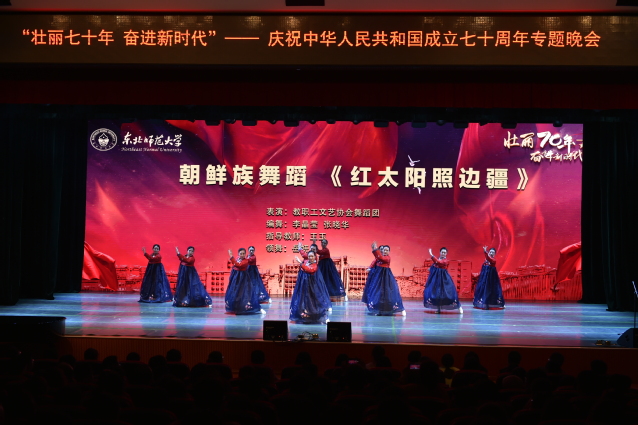 舞姿翩翩,深情演绎谱华章。音乐学院的朝鲜族鼓舞《长白又一春》舞姿优美,表现了尊师重道、铭记师恩的深切情怀。教职工文艺协会舞蹈团的舞蹈《红太阳照边疆》,体现了延边人民斗志昂扬,军民团结建设边疆的美好图景。音乐学院倾情奉献的舞蹈巨制《鸡毛信》,用精湛有力的肢体语言向革命期间英勇无畏、前仆后继,用鲜血扭转乾坤,用生命铸造凯歌的战地情报员致敬。教职工文艺协会舞蹈团和健身舞团带来的民族舞蹈集锦《各族儿女颂祖国》展示了在党的领导下,各族人民同呼吸、共命运,携手奋进新时代的美好愿景。音乐学院极具北方特色的舞蹈《冬日里的红彤彤》,用铿锵的舞步,诠释北方男儿的壮志满怀。