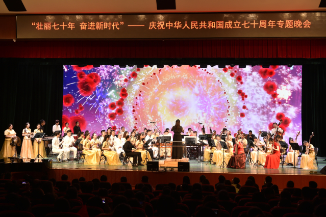 9月26日,音乐学院净月音乐厅内鼓乐齐鸣、欢歌如潮,“壮丽七十年,奋进新时代”——庆祝新中国成立70周年专题晚会在这里隆重举行。本次活动由党委宣传部、校工会、党委学生工作部、校团委、音乐学院联合主办。学校党委书记杨晓慧、党委副书记王延、党委副书记兼副校长马晓燕、副校长韩东育、副校长王占仁、校长助理薛利锋,部分机关部处、学院(部)相关负责人与广大师生一同观看了演出。