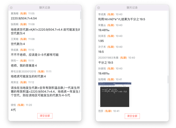 通过编写简单的随机提问小程序,抽检学生对重点和难点问题的掌握情况。利用腾讯会议“私信”功能的便利性,检验随堂测试的情况,实时掌握学生的学习状态,及时发现并解决问题,帮助学生巩固学习效果。