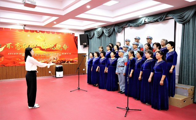 表彰大会结束后,由离退休教职工自编自导自演的文艺演出正式开始,老同志们载歌载舞,共同庆祝党的九十八岁生日。