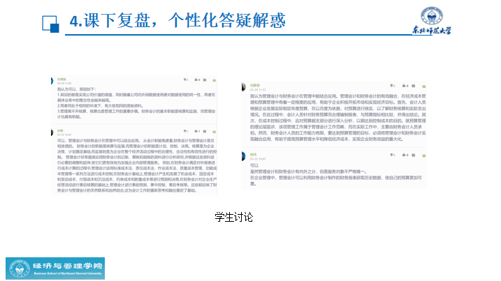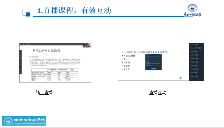 管理会计课程充分发挥线上授课的优势,在直播基础上,调动丰富的网络教学资源,打造了学思结合、活学活用的教学课堂。