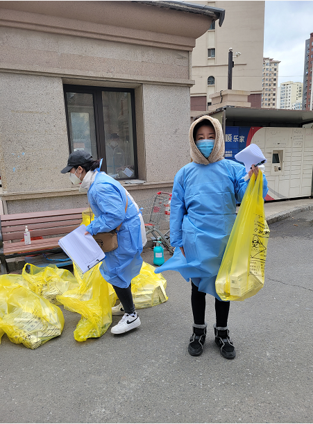 作为小区的志愿者,她的主要工作是抗原试剂盒的发放,小区巡逻检查,小区物资发放及统计。在服务中,她发现由于大家良好的执行足不出户政策,导致楼道里堆满了生活垃圾,极易滋生细菌,所以她便一层一层地为大家清理垃圾,营造健康的公共环境。每次一个流程下来,加上不透气的防护服,浑身都湿透了。
