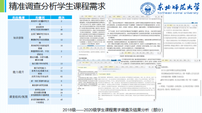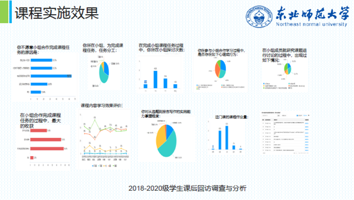一是精准调研学生学习需求,践行“以学生为中心”教学理念。通过电子邮件、问卷星等线上工具对 2018—2021级四届学生进行课程学习需求,其最大共识是希望能够将学到的研究方法真正运用到科研实践中。因此,教师将其作为确定课程目标的一个重要依据。