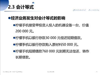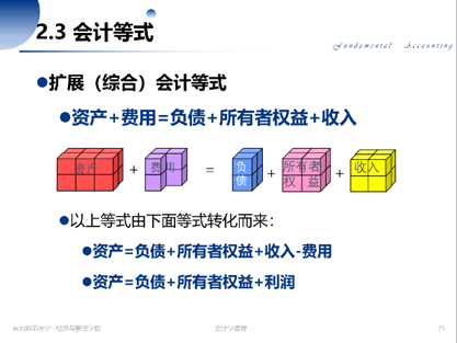 教学内容:会计要素之间的相互关系;会计恒等式(静态会计等式、动态会计等式和扩展会计等式);经济业务的发生对会计等式的影响。
