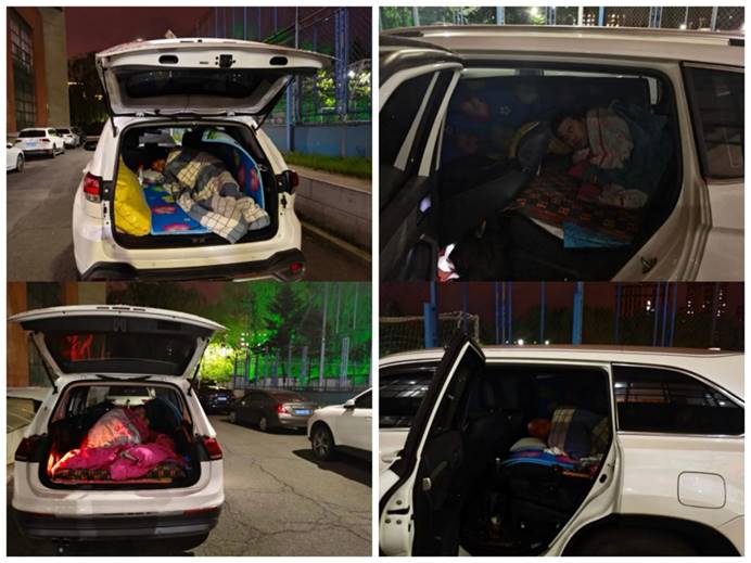 校园后勤保障,配餐供应及时,日常生活离不开他们的默默付出。疫情无情人有情,他们在学校最需要的时候挺身而出,不辞辛劳。战“疫”有多久,他们就在车里睡了多久。他们曾伴着晚冬飞舞的雪花入眠,也曾在夏日的风声和蝉鸣中进入梦乡。