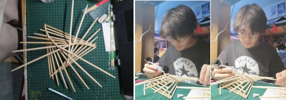 应对方法一:针对线上实践课程教学的痛点,设置“点对点”的教学环节。“点对点”即师生之间建立直接的联系,通过问题研讨、实践制作等方式,确保每一位学生均与教师充分交流互动。由于空间构成的作业是根据材料的性质、特点、数量来定制相应的构成方案的,因此“点对点”的教学设计能够做到一人一策,在教师的指导下,使每位同学根据自己掌握的材料,来实施不同的、带有各自特点的构成方案和策略。