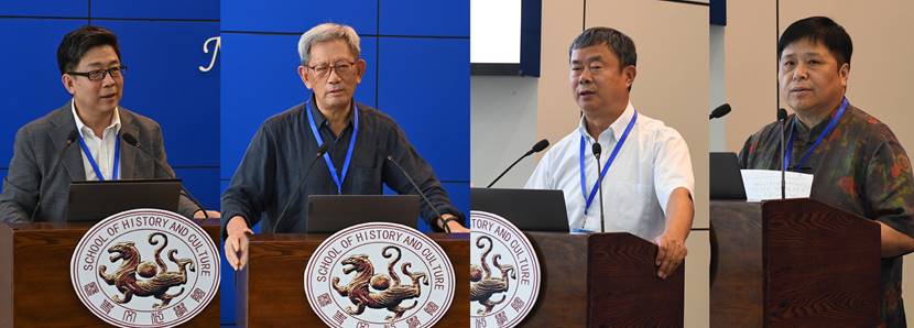 在基调演讲环节,杨伯江作了题为《战后日本对东亚政策综合考察》的基调演讲。他以亚洲、东亚等概念的变迁为出发点,综合考虑历史背景与现实状况影响,从三个时期、四个角度对战后日本制定执行的对东亚政策进行了梳理,指出了其战略重点与政策主线的视角调整与微妙变化。宋成有以《中国日本史研究主体性与学脉传承的再思考》为题,围绕邹有恒先生的外国史研究这一主题,系统性地阐述了邹先生对于建立中国特色日本史研究的独特贡献,指出了在日本史研究中应采取的“实事求是”和“结合现实”的“双实”路径,并对主体性与学脉传承这两个建立中国日本史研究体系的核心问题进行了展望。宋志勇的基调演讲的题目为《日本十四年侵华战争与对华认识》,指出,日本对中国发动侵略战争的心理根源应追溯至近代以后日本长期形成的对华认识和对华观。他对日本的错误对华认识和对华观进行了分类整理与脉络梳理,并以此为基础对未来中日关系的发展做出了展望。赖正维教授围绕《琉球问题的历史、现状与未来》,针对二十世纪八十年代迄今包括台湾、香港在内的中国史学界关于琉球历史及中琉关系史研究的进展及学术成果做出了相应回顾与梳理,点明了琉球问题研究的特点与今后关注的课题,并结合冲绳知事访华一事阐明琉球问题研究的重要意义。