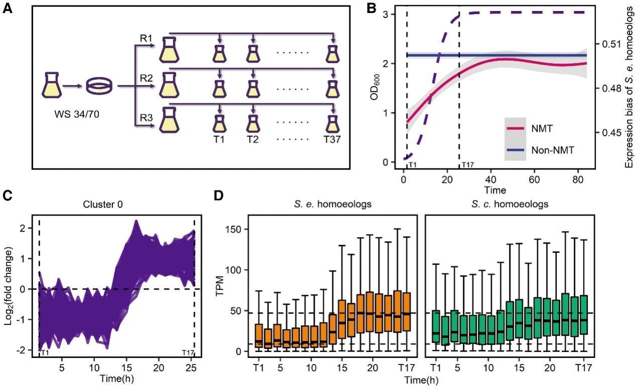 图3拉格酵母全生长时期各阶段特异性的亚基因组偏好状态转变