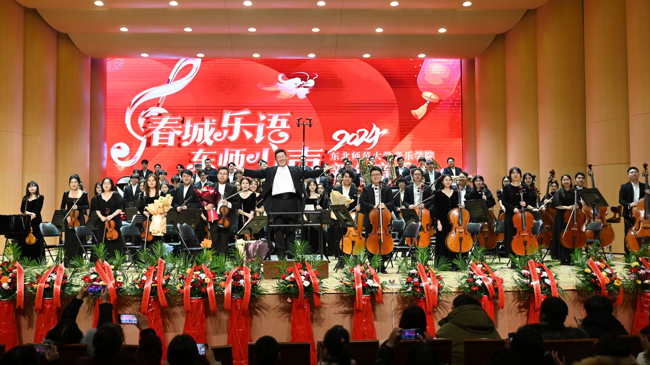12月27日、28日晚,在净月校区音乐厅、长影音乐厅内,管弦乐章回荡,旋律激昂。音乐学院青年交响乐团举行“春城乐语 东师心声”——2024年新年音乐会。姜宝君教授带领77名演奏员、3名歌唱家,用13首曲目为现场观众献上一场音乐盛宴。音乐会在极具节日特色,凸显新年氛围的《节日序曲》中拉开帷幕,营造出浓厚的节日氛围。《斯塔米兹降B大调单簧管协奏曲》《海顿D大调协奏曲》展现了单簧管与大提琴独特的魅力,让现场观众体会到了古典音乐的完美音响效果与严谨的作曲结构,走入交响曲的美好世界。《斗牛士之歌》把斗牛士埃斯卡米里奥英勇无畏的气概,英俊威武的形象演绎得活灵活现。《忆秦娥•恒山月》展现了中国艺术歌曲无与伦比的中国音乐魅力。《天堂电影院》用熟悉的旋律,抒情的曲调,把大家带回到电影之中。《贼雀序曲》《威风堂堂进行曲》《钢琴三重奏》《佛罗伦萨进行曲》端庄优雅,为观众们诠释了独特的绅士风格交响乐的独特魅力。《饮酒歌》《今夜无人入睡》两首经典的歌剧音乐,让观众回味无穷。《我和我的祖国》将活动推向高潮,大家齐唱,将爱化作流淌的旋律,表达着中华儿女的爱国之情。