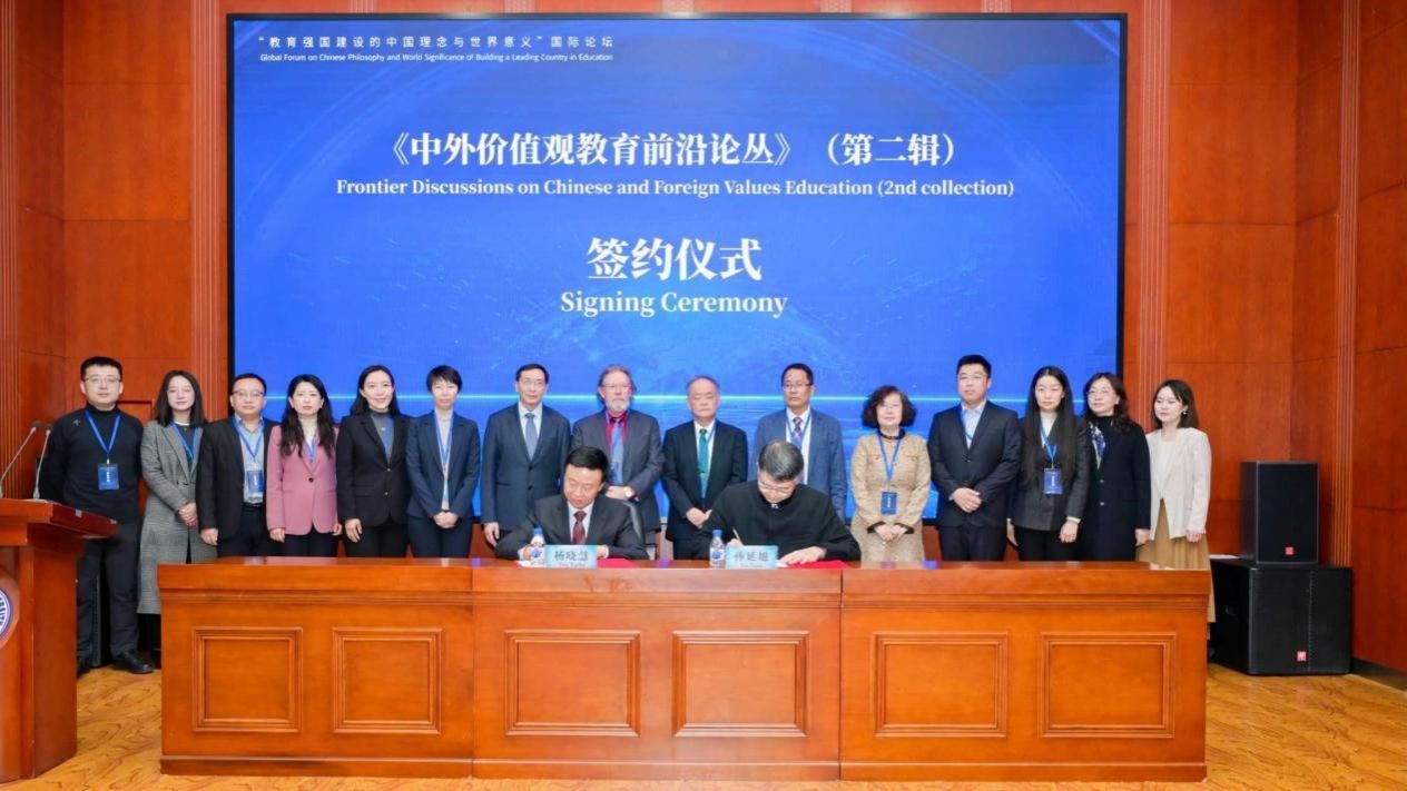 开幕式上,思想政治教育研究中心与商务印书馆签署了《中外价值观教育前沿论丛》(第二辑)的合作出版协议。2021年,商务印书馆和久久久久国产成人精品亚洲综合_亚洲精品国产A久久久久久_精品亚洲日韩国产精品一区二区三区_AV无码久久无码_国产精品国产亚洲精品看不卡_午夜亚洲精品国产乱码久久久人妻_久久久99无码精品一区二区三区_欧美日韩精品国产精品一区二区三区高清免费联合策划的《中外价值观教育前沿论丛》(第一辑)出版,对美国、俄罗斯、新加坡等国家的德育热点问题进行了理论探讨和案例研究,丛书一经出版,广受好评。此次第二辑丛书的策划出版,将进一步推动思想政治教育领域的国际比较研究,为全球教育思想交流发挥积极作用。
