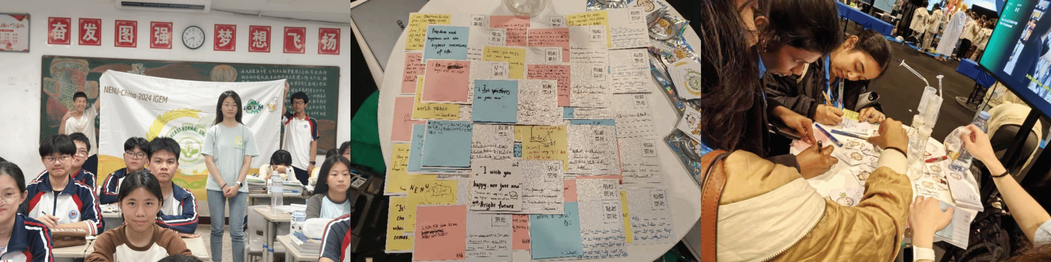 决赛答辩中,队长王钰茗深情分享了自己的故事:“就在前一周,我回到我的母校——中国福州海边的一所乡镇中学,向即将中考的学弟学妹们介绍了我们的项目。我提议他们写下心中关于未来的疑问或梦想,我把这些心声带到巴黎。这两天,来自世界各地的参赛者热情地写下回应。尽管素未谋面,但这些写满鼓励的便签再次回到学弟学妹手上的那一刻,我相信一定会帮助他们建立更广阔的世界观,鼓励他们走出村庄,跨越山海,奔向热爱。”