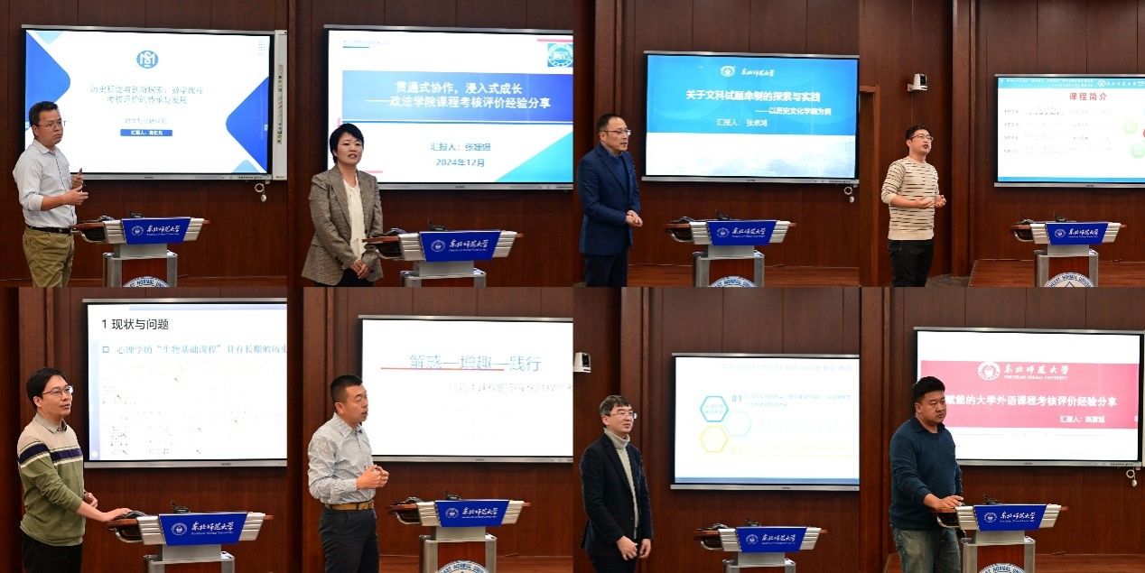 会上,数学与统计学院高忆先教授、政法学院张姗姗副教授深入分享了推进课程考核评价改革的关键举措及取得的显著成效。历史文化学院张卓鸿副教授、物理学院刘昊迪教授、心理学院巨兴达副教授、经济与管理学院唐亮副教授、环境学院关久念副教授和外国语学院陈彦旭教授分别聚焦试题命制、过程性考核等内容做了全面的改革经验交流。