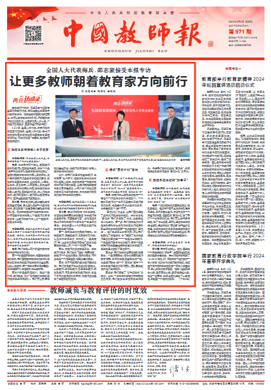此前,2月28日,《光明日报》还报道了邵志豪不忘育人初心,加强中小学教研体系建设的责任担当。3月6日,《中国教师报》专访邵志豪,他就如何弘扬新时代教育家精神,努力建设一支高质量的基础教育教师队伍提出建议。