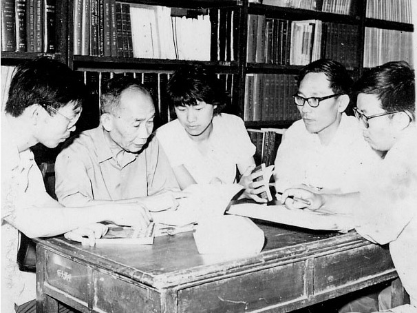 上世纪70年代末,丁则民先生与学生在一起