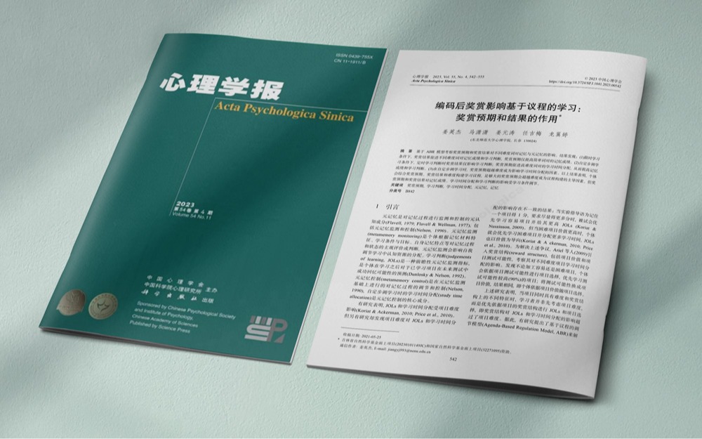 《编码后奖赏影响基于议程的学习:奖赏预期和结果的作用》刊发于《心理学报》2023年第4期,系我校心理学院姜英杰教授所主持的国家自然科学基金面上项目“元记忆监测准确性的认知与神经机制:线索的层级作用”和吉林省自然科学基金项目“奖赏预测误差对记忆的影响:元认知和电生理机制”的阶段性研究成果。 个体如何高效利用有限认知资源提高记忆准确性是元记忆研究要解决的关键问题。该研究区分奖赏欲求阶段和执行阶段对应的奖赏预期(...